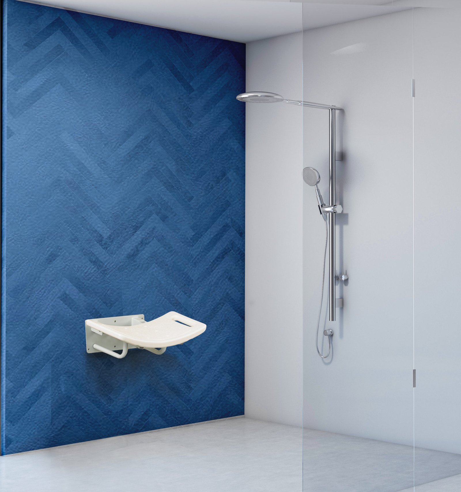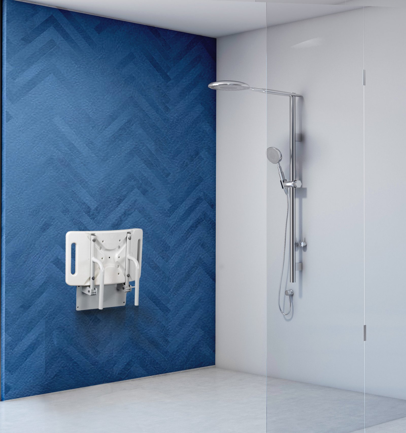 Kompaktiškas, stabilus, lengvai valomas ir dezinfekuojamas dušo suoliukas saugiai tvirtinamas prie sienos. Telpa ir nedideliame duše ar vonioje.
