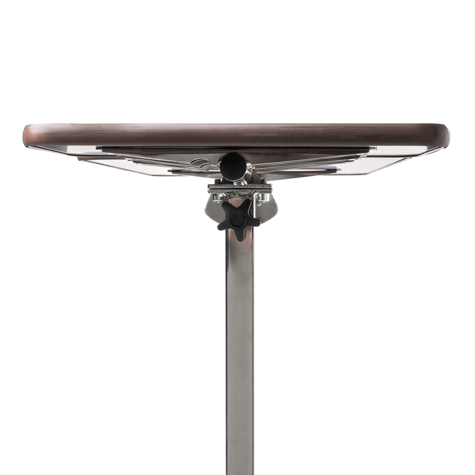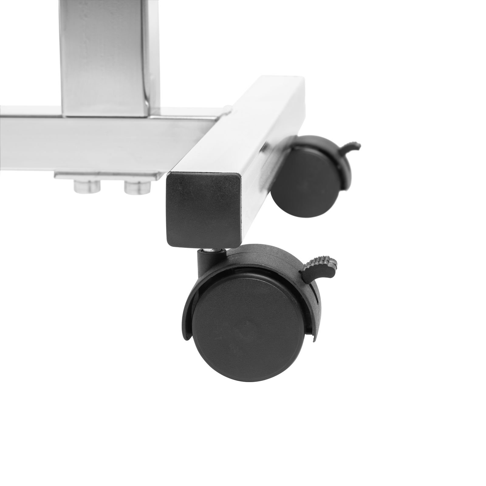 Stalviršis medinis, su paaukštintomis briaunelėmis pagal visą stalviršio perimetrą. Reguliuojama: pasvirimo kampas – iki 45°, aukštis – nuo 82 cm iki 117 cm. Yra keturi 5 cm skersmens ratukai.