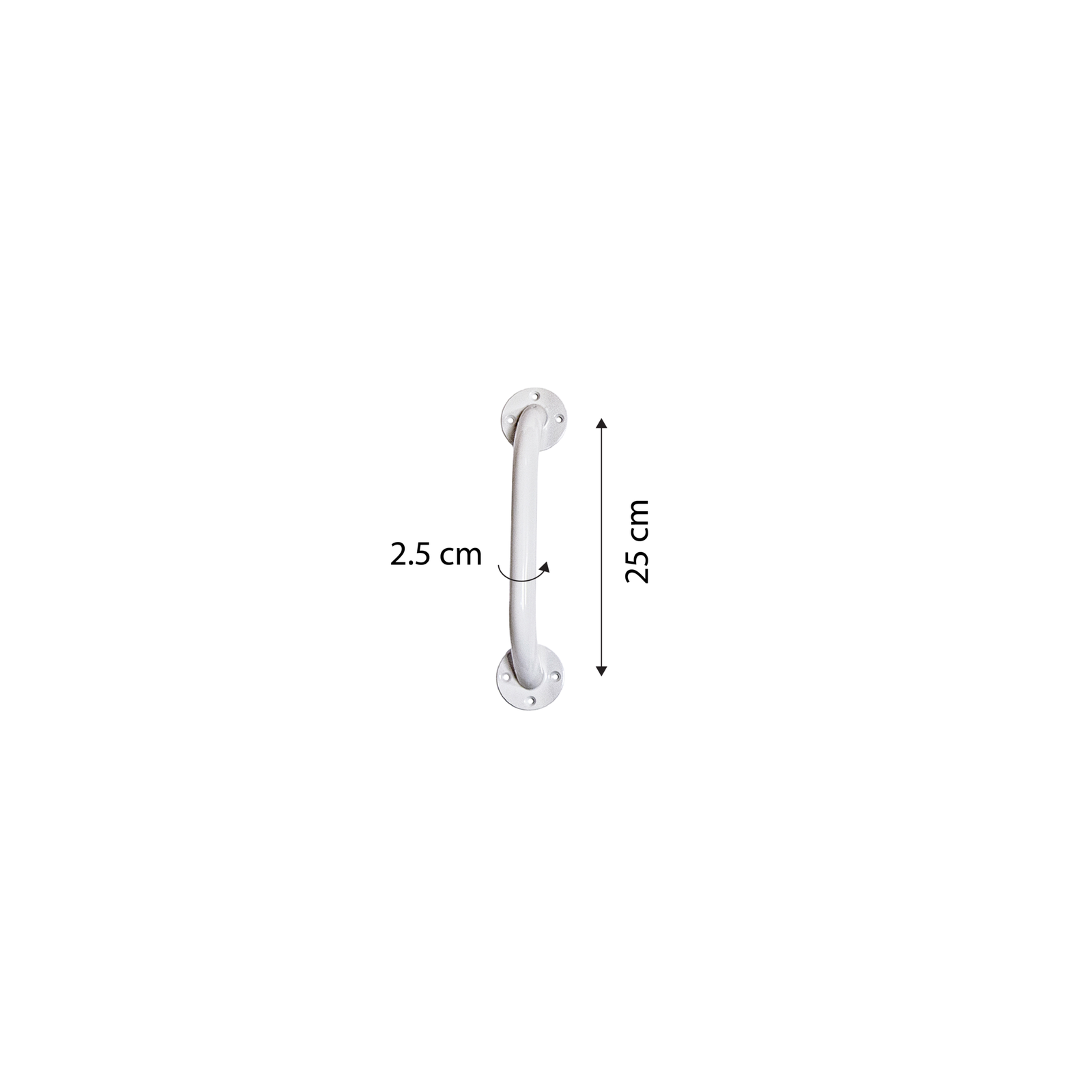 Metalinis dažytas laikiklis pagamintas iš tvirto plieno. Tinka visų tipų vonios ar tualeto kambariams. Laikiklis padeda saugiai įlipti/išlipti iš vonios. Laikikliai prie sienos komplektuojami su 6 tvirtinimo varžtais.