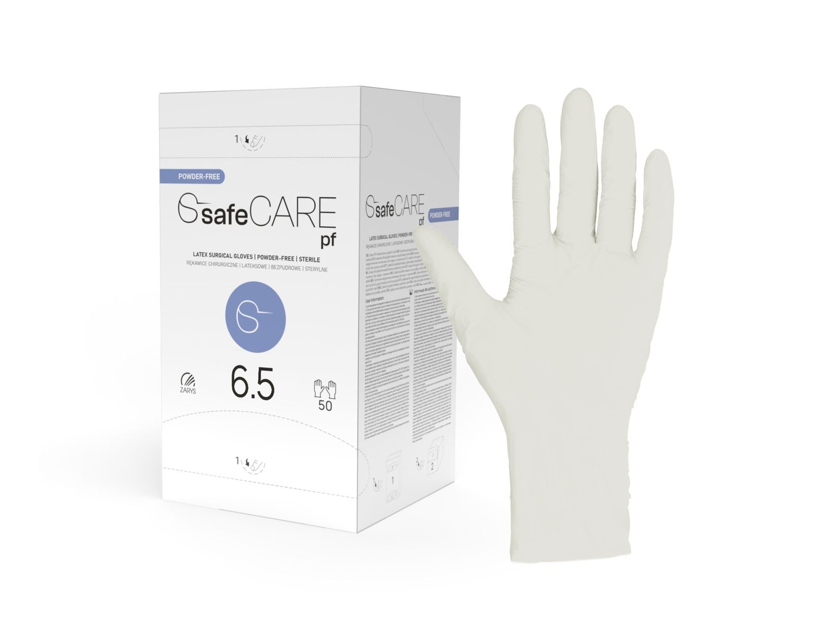 SafeCARE pf chirurginės pirštinės derina universalų pritaikymą, maksimalų saugumą ir ekonominį efektyvumą su naujoviškais pakavimo sprendimais. Šios pirštinės turi mažiausią rinkoje pakuotę, kuri leidžia sutaupyti iki 80 % vietos saugykloje, todėl šios pirštinės sumažina logistikos išlaidas ir užtikrina lengvą prieigą ir organizavimą medicinos įstaigose.