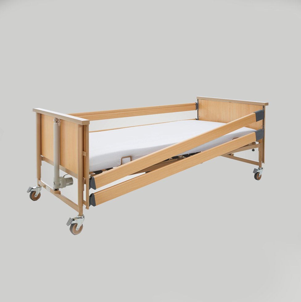 Lovos konstrukcija pagaminta iš metalinių dažytų profilių. Gulimasis paviršius medinis, sudarytas iš keturių dalių, su laikikliais čiužiniui. Lovos aukštis, nugaros ir šlaunų atramų kampai reguliuojami elektriniu būdu. Lovos funkcijos valdomos pultelio pagalba su galimybe blokuoti pasirinktas funkcijas. Ilgas laidas užtikrina patogų pultelio naudojimą iš bet kurios lovos pusės. Lovos galai pagaminti iš laminuotos medžių drožlės plokštės. Lovos medinės dalys buko spalvos. Lovos ratukai 100 mm skersmens su individualiais stabdžiais. Galvūgalyje yra specialios kišenės pasikėlimo rankenai įstatyti. Lova yra paprastos ir patikimos konstrukcijos, surenkama greitai ir be įrankių pagalbos. Lova komplektuojama su nuleidžiamais mediniais šoniniais turėklais iš abiejų lovos pusių ir pasikėlimo rankena.