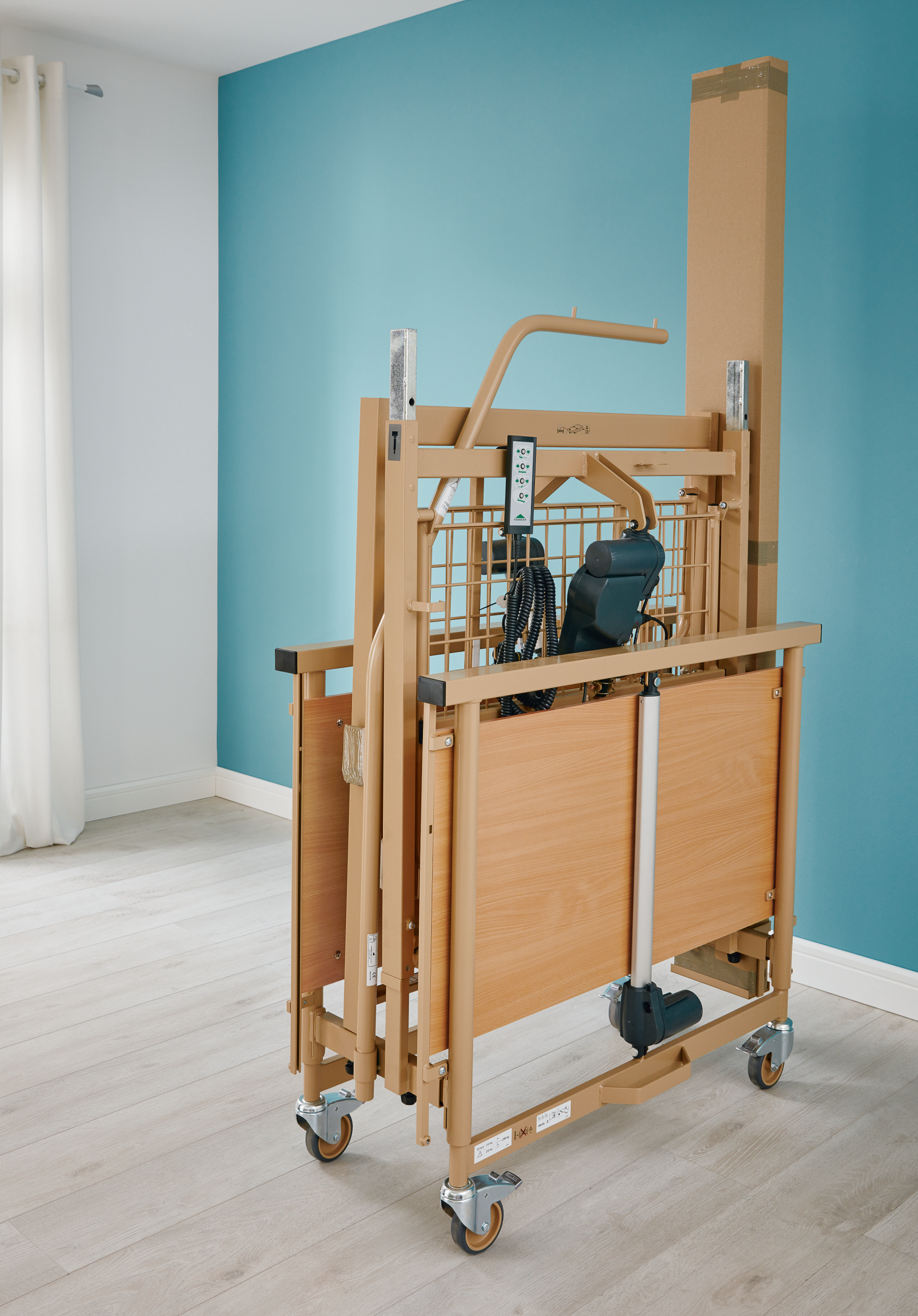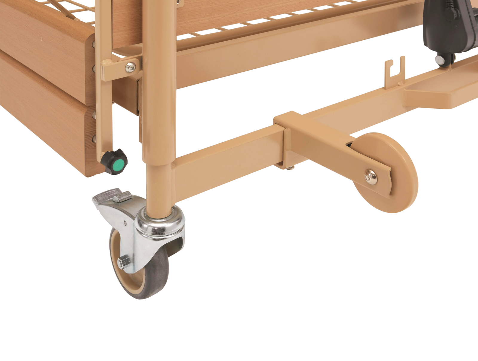 Lovos rėmas pagamintas iš metalinių, dažytų profilių. Gulimasis paviršius – metalinis, sudarytas iš keturių dalių, su laikikliais čiužiniui. Lovos galai pagaminti iš laminuotos medžio drožlių plokštės. Visos medinės lovos dalys – buko spalvos. Visi lovos paviršiai pripažinti saugiais sąlyčiui su oda. Lova turi keturis tvirtus 10 cm skersmens ratukus su individualiais stabdžiais, garantuojančiais stabilią fiksaciją. Galvūgalyje yra specialios kišenės pasikėlimo rankenai įstatyti. Į lovos komplektaciją įeina: nuleidžiami, vientisi mediniai šoniniai turėklai iš abiejų lovos pusių ir pasikėlimo rankena. „Easy click“ sistema – užtikrintas apsauginių turėklų pakėlimas per kelias sekundes!